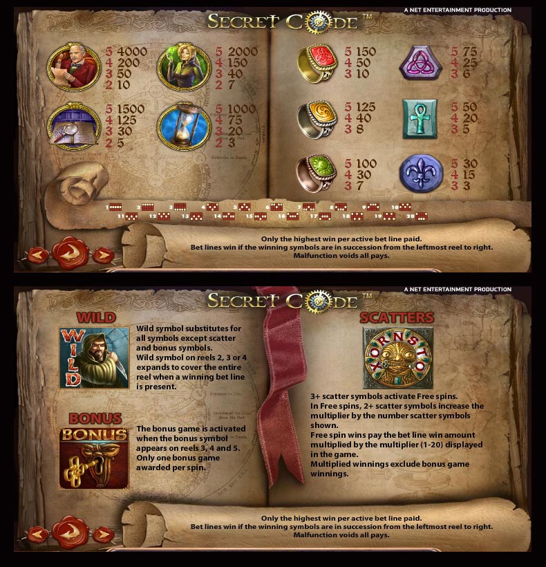 Betsafe Free Game Page ………………………. NetEnt’s Secret Code ……………………… Secret Code’s Pay-table