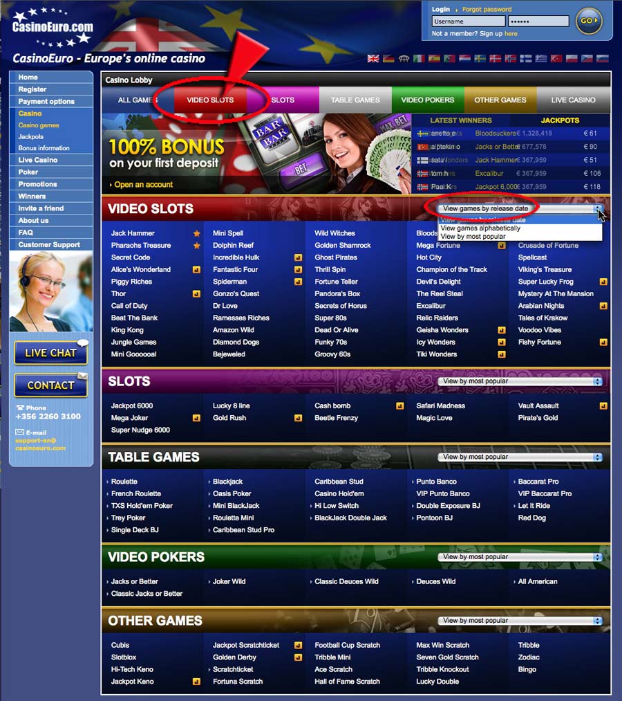 CasinoEuro mac online casino boast a complete menu of NetEnt slot Games. So if you are looking to check out ALL NetEnt games "this is the place." This BIG Casino has been around and is well placed. Recently CasinoEuro has been adding other slot games to her menu other than NetEnt slots. Check out the tab “view games by release date” for the latest additions. Almost every week a new slot is added. The casino page image is immediately to the right. The whole entire first row of video slots has been added this month. They needed to redo the slot casino layout to accommodate them all.