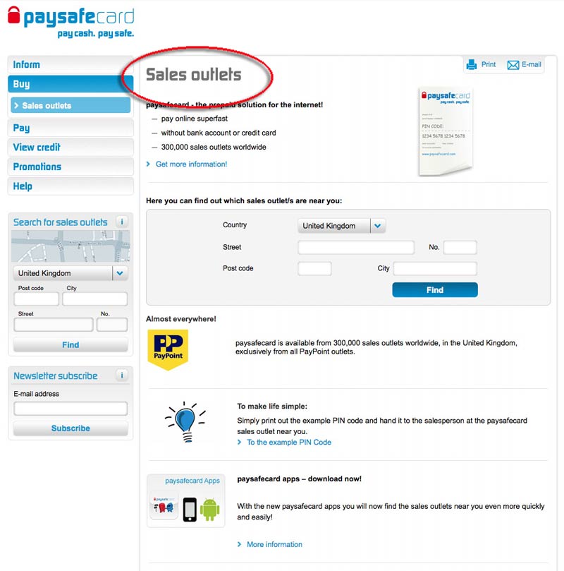 Paysafecard **** is used as a prepaid casino deposit method by their clientele in UK, Czech Republic, Sweden, Denmark, Poland, Austria, Germany, Greece, Slovenia, Portugal, Netherlands, Belgium, Spain, Cyprus, France, Irelands, Italy, Luxemburg, Serbia and Switzerland. They handle various currencies: EUR, GPD, CHF, SKK, CZK, PLN, DKK, RON, SEK and NOK. Paysafecard is one of Europe’s leading prepaid internet paymet systems. There are more than 280,000 outlets where you can easily buy a Paysafecard using cash. Paysafecards are based on the prepaid voucher system which is simpler than obtaining an e-wallet or debit card. There is no registering. Simple enter a Paysafe outlet and buy a card in denominations of 10, 25, 50 or 75 Euros. Up to 10 Paysafe vouchers may be used to purchase a single item. You can use the Paysafecard to pay for USD products online as well. The 280,000 outlets are in the following countries: Deutschland, Osterreich, UK, Espania, Greece, Schweiz, Sloenska, Slovejina, Nederland, Belgium, Portages, Ceska Republika, France, Polska, Denmark, Eire, Luxumbourg, Italia, Argentina and Sweden. They offer a finder on their web site. Pick your country and punch in your address. It automatically gives you the nearest outlet. Paysafecards are purchased with cash. Let me mention that Paypoint locations are one of the more accessible and well known spots to buy a paysafe card. You can also purchase your UKash prepaid card for a casino deposit at Paypoint as well.