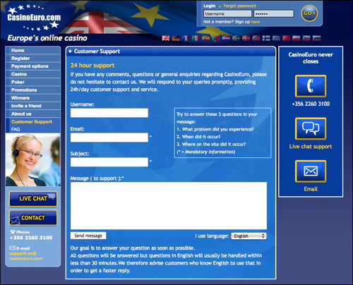 I have chatted with the crew at CasinoEuro more than a half dozen times in just one week and I have always found them not only attentive but super well informed. CasinoEuro is one of my favorite places to slot when I want to play Net Entertainment flash casino no download slots. The feeling of friendship and support keeps me coming back.